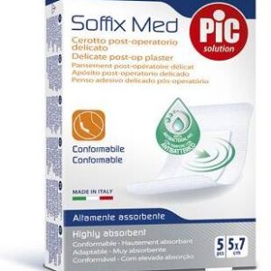 CEROTTO PIC SOFFIX MED IN TNT CON TAMPONE CENTRALE ASSORBENTE STERILE MONOUSO 5X7 CM ANTIBATTERICO 5 PEZZI